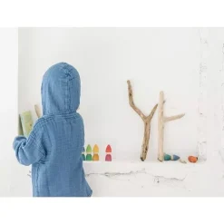 Het duurzame speelgoed van Bumbu Toys wordt met de hand gemaakt, waardoor elk product uniek is. Om de speelfiguren te beschermen en lang mooi te houden worden ze behandeld met verf op waterbasis en biologische olie.