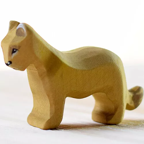 In een vrolijk safari tafereel op de speeltafel zou dit handgemaakte, houten leeuwenwelpje ‘Lion Cub’ van het Roemeense merk Bumbu Toys zich helemaal thuis voelen. Het duurzame speelgoed, geïnspireerd op de natuur, prikkelt de verbeelding van kinderen.