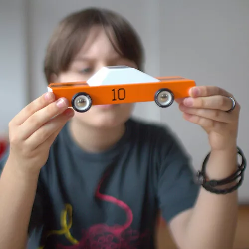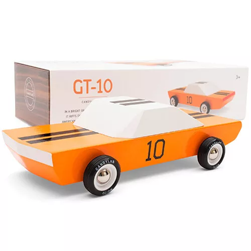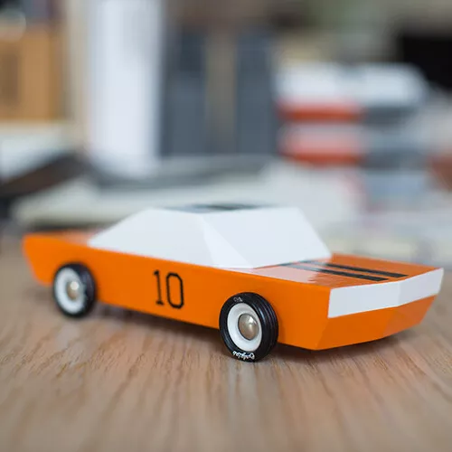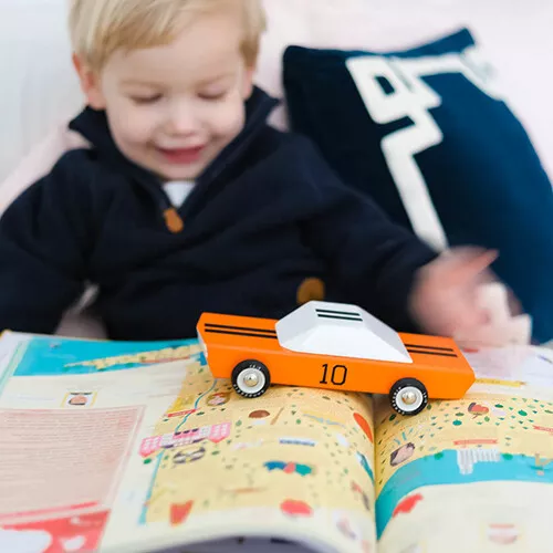 Steel de show met deze knaloranje sportauto ‘Americana – GT 10’ van het Amerikaanse merk Candylab. De houten speelgoedauto doet door een simpel maar uiterst sterk ontwerp meteen denken aan de klassieke Amerikaanse sportwagens uit vervlogen tijden. Designerspeelgoed voor de echte autoliefhebber.