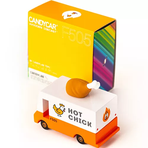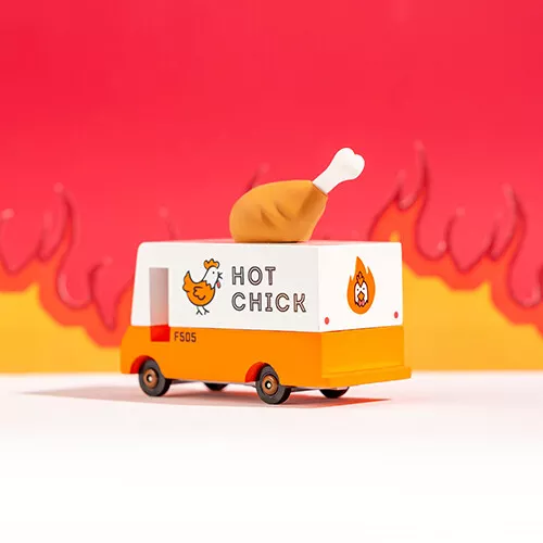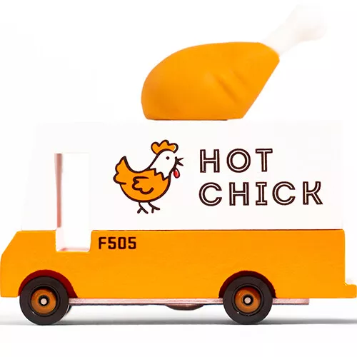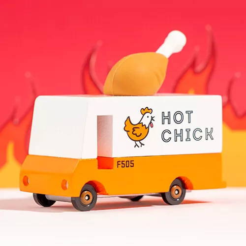 Deze speelgoedauto ‘Candyvan – Hot Chick’ van het Amerikaanse merk Candylab verkoopt de lekkerste kip van de stad! Deze oranje foodtruck is door zijn opvallende uiterlijk van ver af te zien, en maar goed ook, want deze snack wil niemand missen.