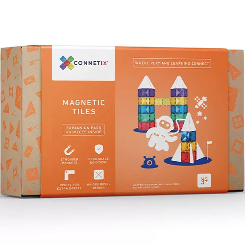 Deze set van Connetix kan gecombineerd worden met de andere sets van Connetix of met de sets van Magna-Tiles.