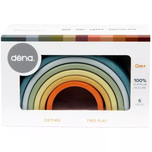 Dit bijt- en stapelspeeltje ‘Natuur – Regenboog’ van het Spaanse merk Dëna is veelzijdig open ended speelgoed waar op allerlei manieren mee gespeeld kan worden. Van bijtspeeltje voor de allerkleinsten tot stapelspeelgoed voor de grotere kinderen.