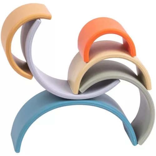– 3-6 jaar: combineer verschillende Dëna-speeltjes om steeds complexere structuren te bouwen of gebruik de regenboog in fantasiespel.