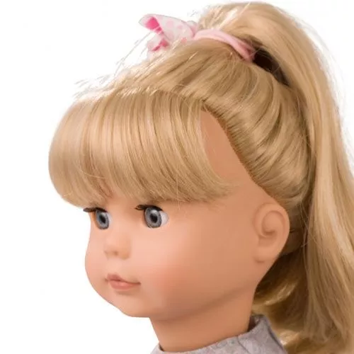 Het haar van de pop lijkt bedrieglijk echt en is van hoogwaardig materiaal. Het haar is in het hoofdje ingenaaid en daardoor zeer duurzaam. Het kan daarom gewassen, gekamd en gekapt worden. Als het haar met een föhn gedroogd wordt, dient de afstand van de föhn tot de pop minstens 20 cm te bedragen om beschadiging te voorkomen.