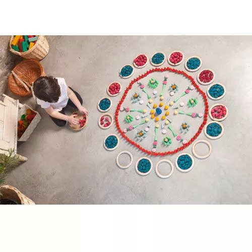 De speelschijfjes zijn in combinatie met ander speelgoed een mooie aanvulling, waarmee allerlei figuren en patronen gemaakt kan worden. Of het wordt gebruikt als speelgoed geld. De simpele vorm biedt eindeloos veel mogelijkheden.