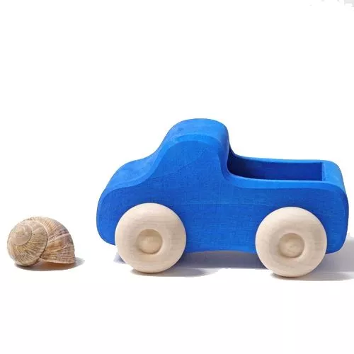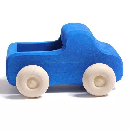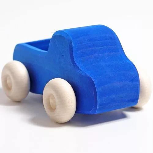 Een kleine, maar robuuste blauwe vrachtwagen van het Duitse merk Grimm’s. Met de open laadbak is deze speelgoedvrachtwagen uitermate geschikt voor het vervoer van kleine spulletjes.