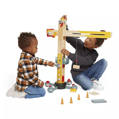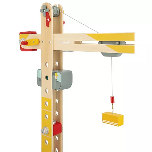 Deze grote houten speelgoedkraan van het Franse merk Janod biedt heel veel speelmogelijkheden voor kleine nieuwsgierige kinderen. Hoe wordt er gehesen? De kraan hijst niet alleen omhoog en omlaag, maar kan ook nog naar voren en naar achteren bewogen worden.