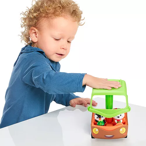 In de bus is plek voor zes passagiers én hun bagage, want achterin zit een geheim luik om kleine spulletjes in op te bergen. De speelgoedauto is eenvoudig te openen voor kinderen: zij drukken simpelweg op het dak en de bus springt open.