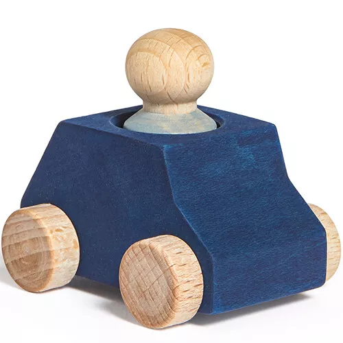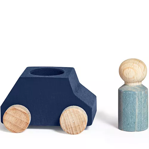 Instappen en uitstappen. Het kleine autootje ‘Blue Wooden Car With Grey Figure’ van het Spaanse merk Lubulona rijdt het houten vriendje overal mee naartoe. De elementaire vorm van het speelgoed, zonder details, is heel geschikt voor kleine kinderen. Het laat veel aan de eigen fantasie over en heeft een brede inzetbaarheid.