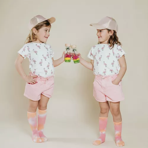 Ik zie, ik zie wat jij niet ziet. Kleur, geluid en het ontspannen genieten op een tropisch eiland komen samen in de sensorische fles ‘Spy Bottle Flamingo’ van het Spaanse merk Petit Boum. Beweeg de sensorische fles heen en weer en betreed een wonderlijk micro-universum op een safari.