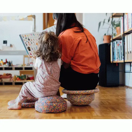 Samen of alleen, het balanceerbord ‘Board Oranje’ van het Duitse merk Stapelstein is ideaal voor speelse balansoefeningen, om op te wiebelen, op te lummelen of op te zitten. Open-endend speelgoed wat in combinatie met de stapelstenen van Stapelstein tot nog meer spelmogelijkheden uitnodigt. De zithoogte voor een kinderkrukje kan er eenvoudig mee worden aangepast, maar kan ook de moeilijkheidsgraad van de balansoefening worden verhoogd. De heldere kleuren spreken kinderen direct aan.